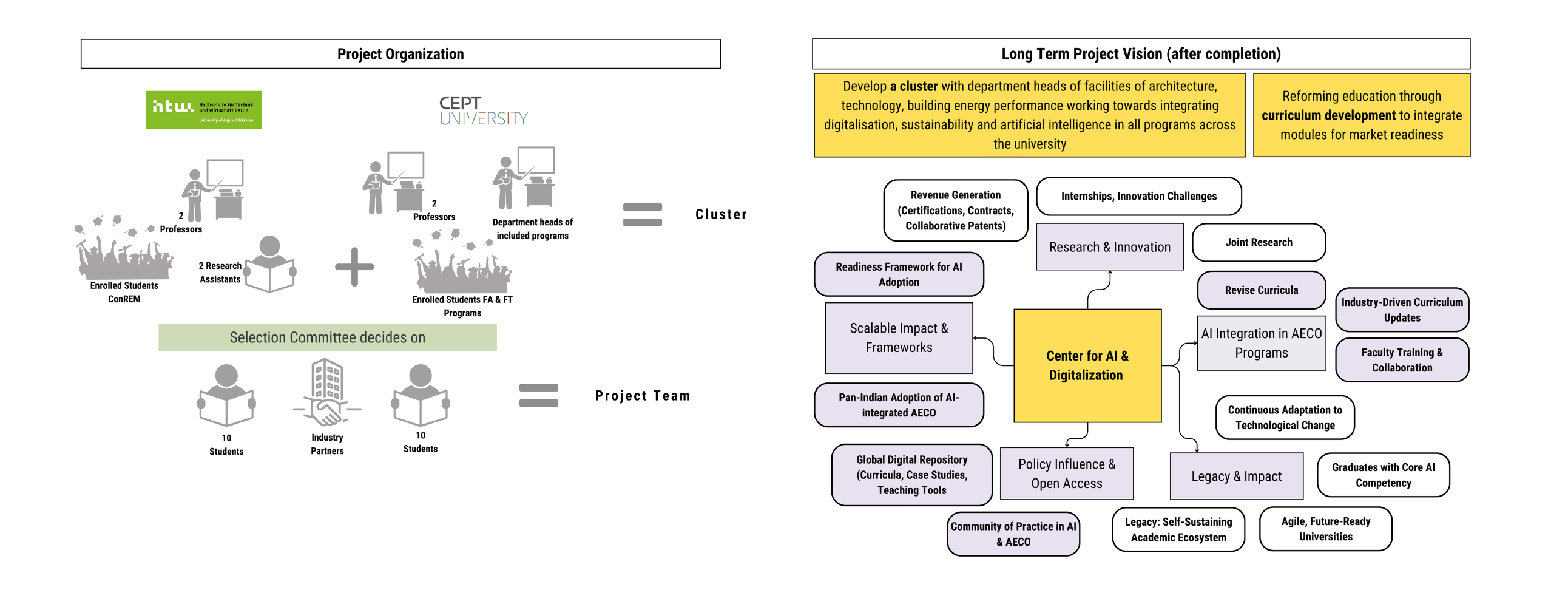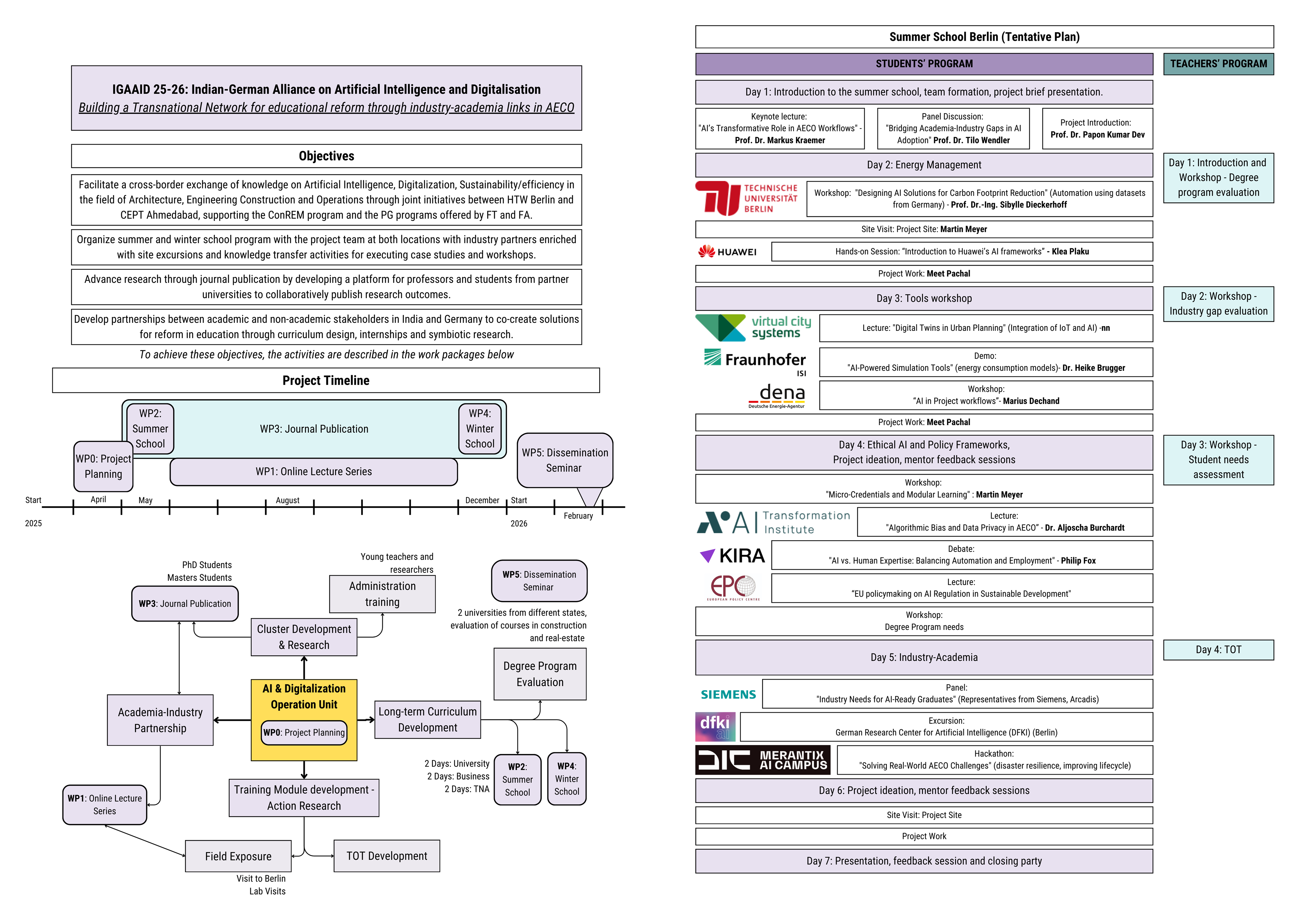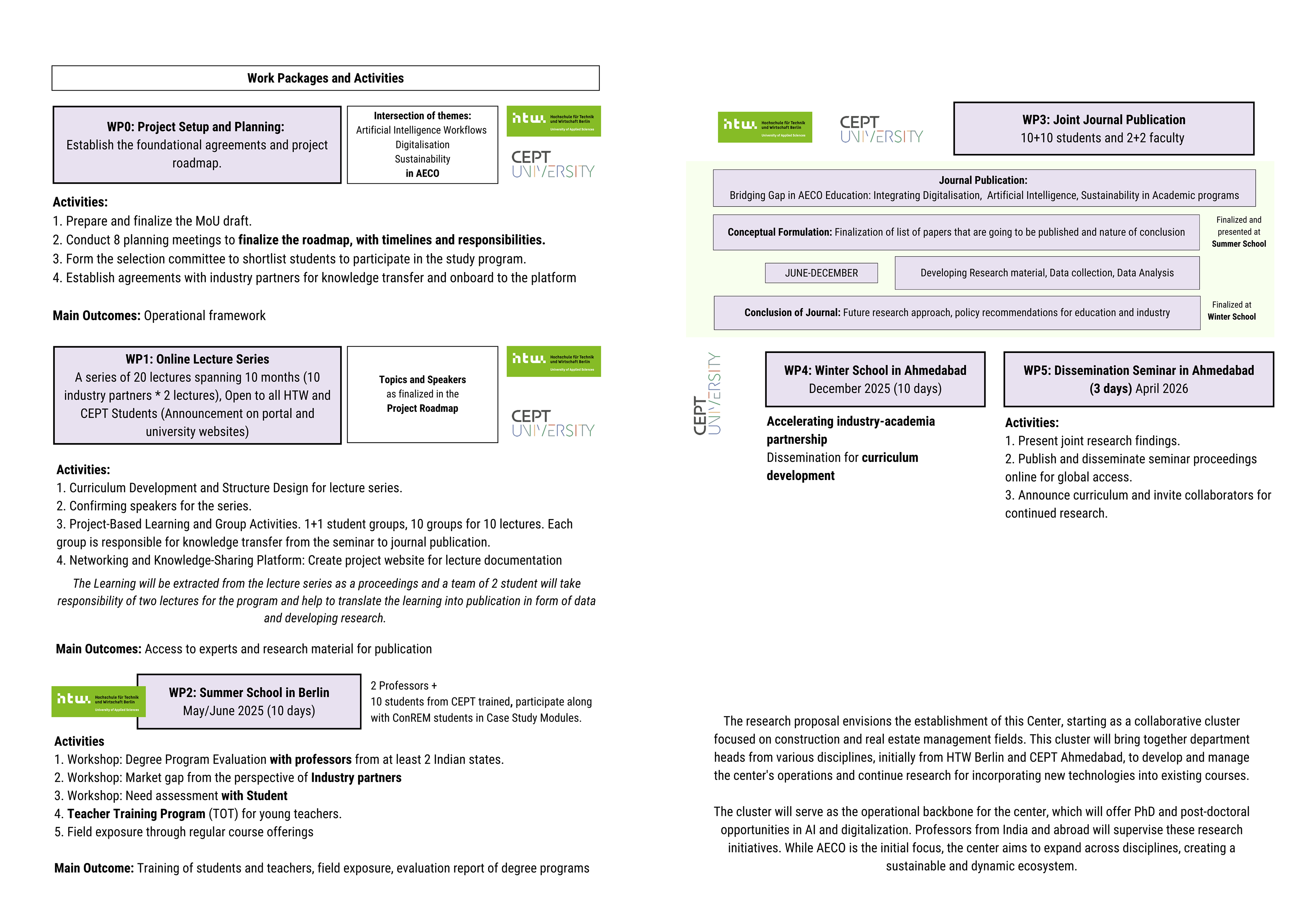 The GIANT proposal outlines the creation of a transnational academic network between CEPT University and HTW Berlin. It focuses on advancing digitalisation and technological innovation in construction education through structured collaboration and knowledge exchange